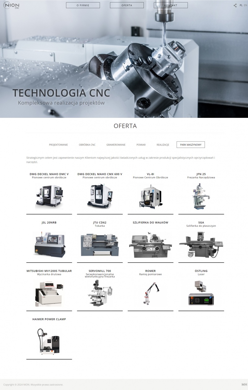 Firma NION jest nowoczesnym i dynamicznie rozwijającym się przedsiębiorstwem, którego zespół posiada wieloletnie doświadczenie i szeroką wiedzę w zakresie kompleksowej obróbki metali oraz tworzyw sztucznych. Działalność ma charakter produkcji jednostkowej i małoseryjnej. Aby zapewnić najwyższy poziom świadczonych usług, nasze pomysły dostosowujemy indywidualnie do wymagań każdego Klienta.